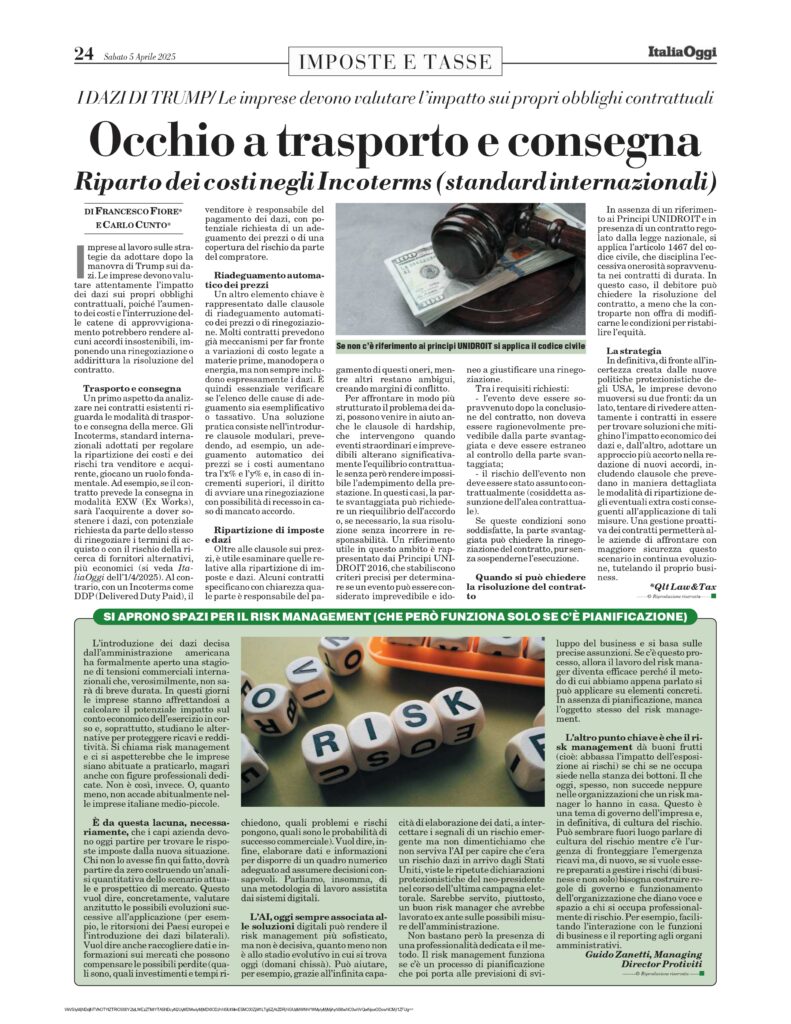 Francesco Fiore, partner di QLT, e Carlo Cunto ne hanno parlato sulle pagine di Italia Oggi.